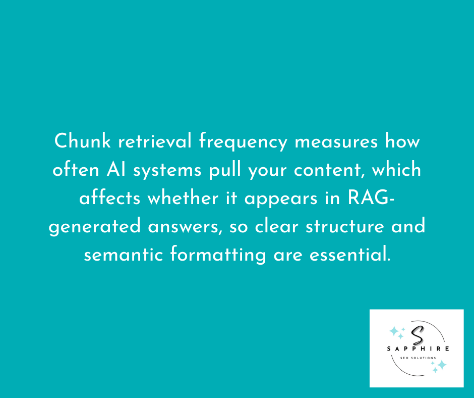 Chunk retrieval frequency is your site's visibility. RAG systems segment content into smaller passages before retrieval. If AI systems aren't getting chunks of your content, it won't appear in the answer. This makes retrieval an important metric to track.