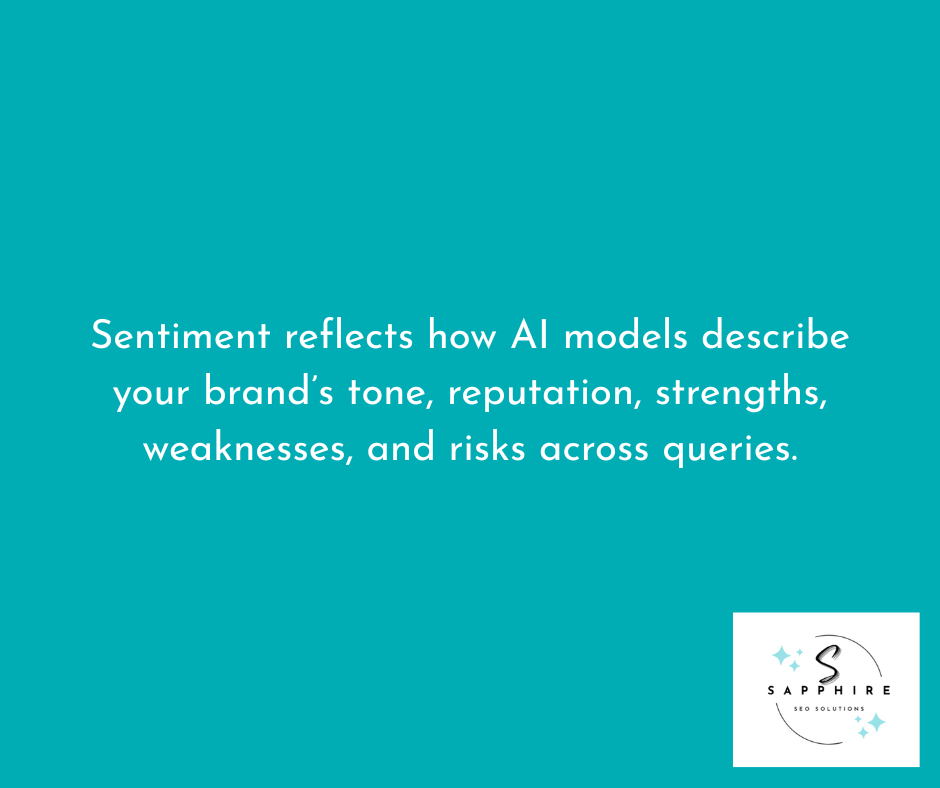What AI models think about your brand is referred to as sentiment. This includes: