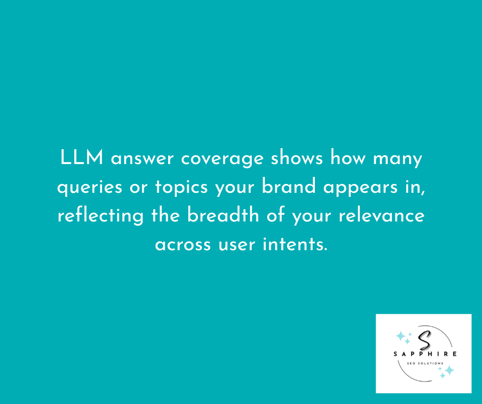 LLM answer coverage tracks the breadth of brand visibility across question types. Broad coverage equals more entry points into AI responses and more opportunities to capture user attention.