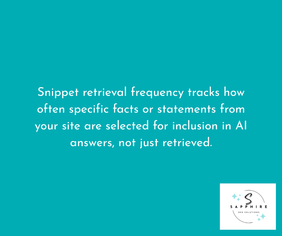 Snippet retrieval frequency measures how often specific snippets or fact blocks from your site appear in AI answer composition. This is different from chunk retrieval.