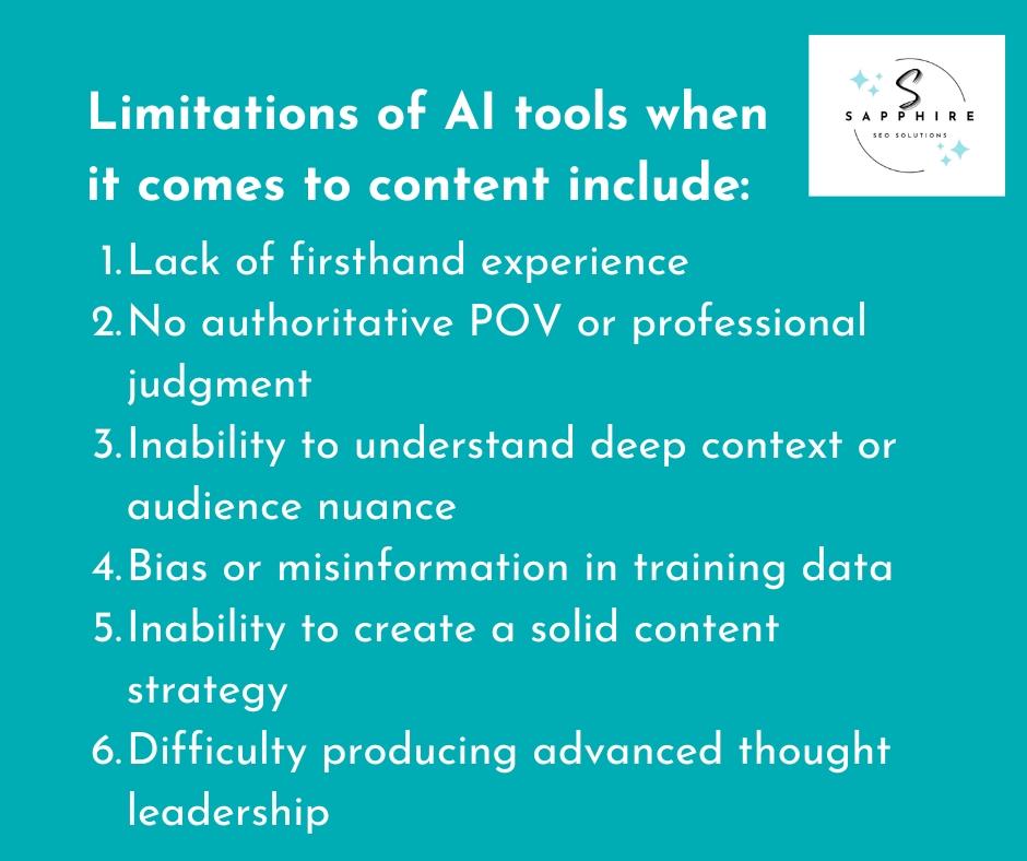 There are several limitations of AI tools when it comes to content generation, and they include the following: