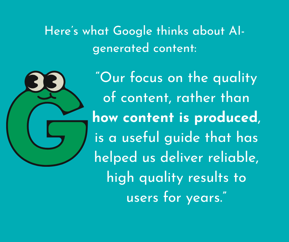 Google published guidelines for search ranking and content creation in 2023, which state that the search engine doesn't penalize content just because it was AI-generated. Google Search features like AI Overviews use AI-generated content, so how could it penalize it?