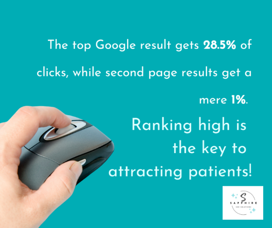 According to Search Engine Journal, the first organic search on Google has an average click-through rate (CTR) of 28.5%, which drops down to 15% and 11% for the second and third positions. Any results on the second page of the SERPs have a 1% CTR. What does this mean for your medical practice?
