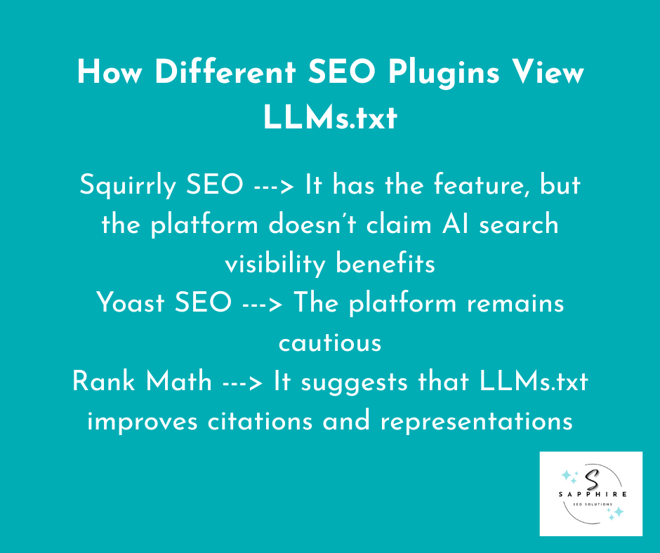 Here are a few different SEO plugins and their views on LLMs.txt: