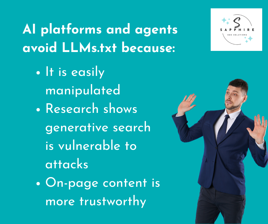 Since LLMs.txt can easily manipulate LLMs, AI platforms prefer HTML. This is because: